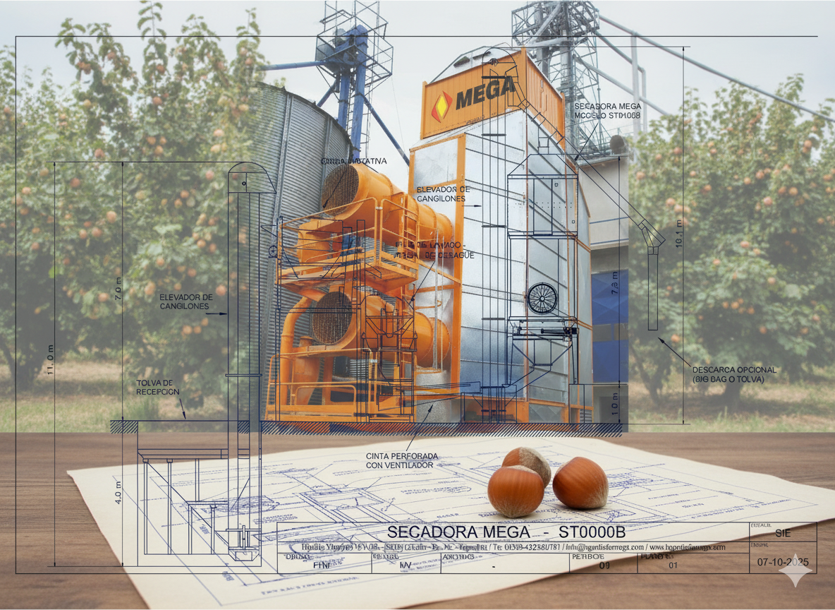 Como distribuidor oficial de MEGA, ponemos a disposición de productores y empresas agrícolas la tecnología más avanzada en secado de avellana europea, combinando eficiencia, seguridad e inocuidad.