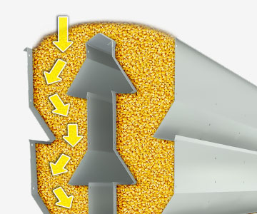 El diseño de las columnas que transportan los granos permite la distribución homogénea del aire.
